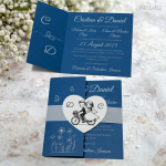 Invitațiile au format pliabil, beneficiază de tipar de înaltă calitate și sunt accesorizate cu panglică și etichetă decorativă.